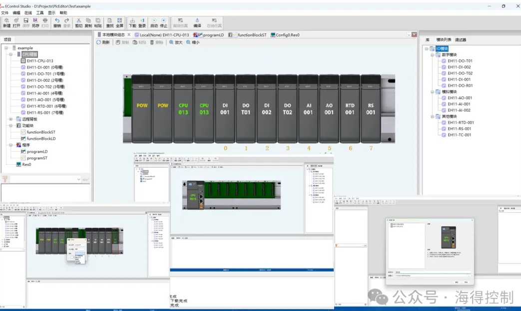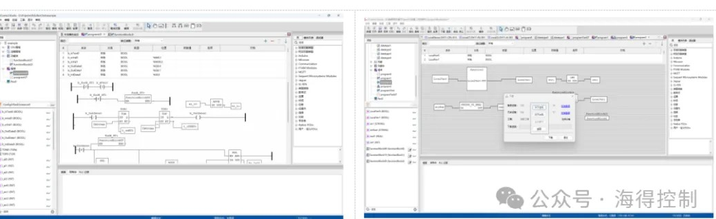 EControl Studio支持梯形图(LD)、指令表(IL)、顺序功能图(SFC)、功能块图(FBD)、结构化文本(ST)。集成变量编程,支持自定义功能块,可帮助用户快速封装行业模块和算法,支持代码语法检查等功能,帮助用户快速定位与解决问题。